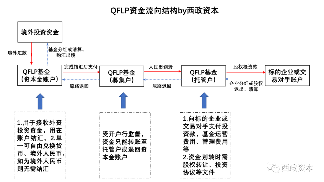 3. QFLP基金在投資范圍上不得投資于外商投資負面清單中的行業,不得投資于住宅及商業地產開發,亦不得投資于二級市場進行有價證券的買賣,并遵守各地QFLP政策中的相關規定。