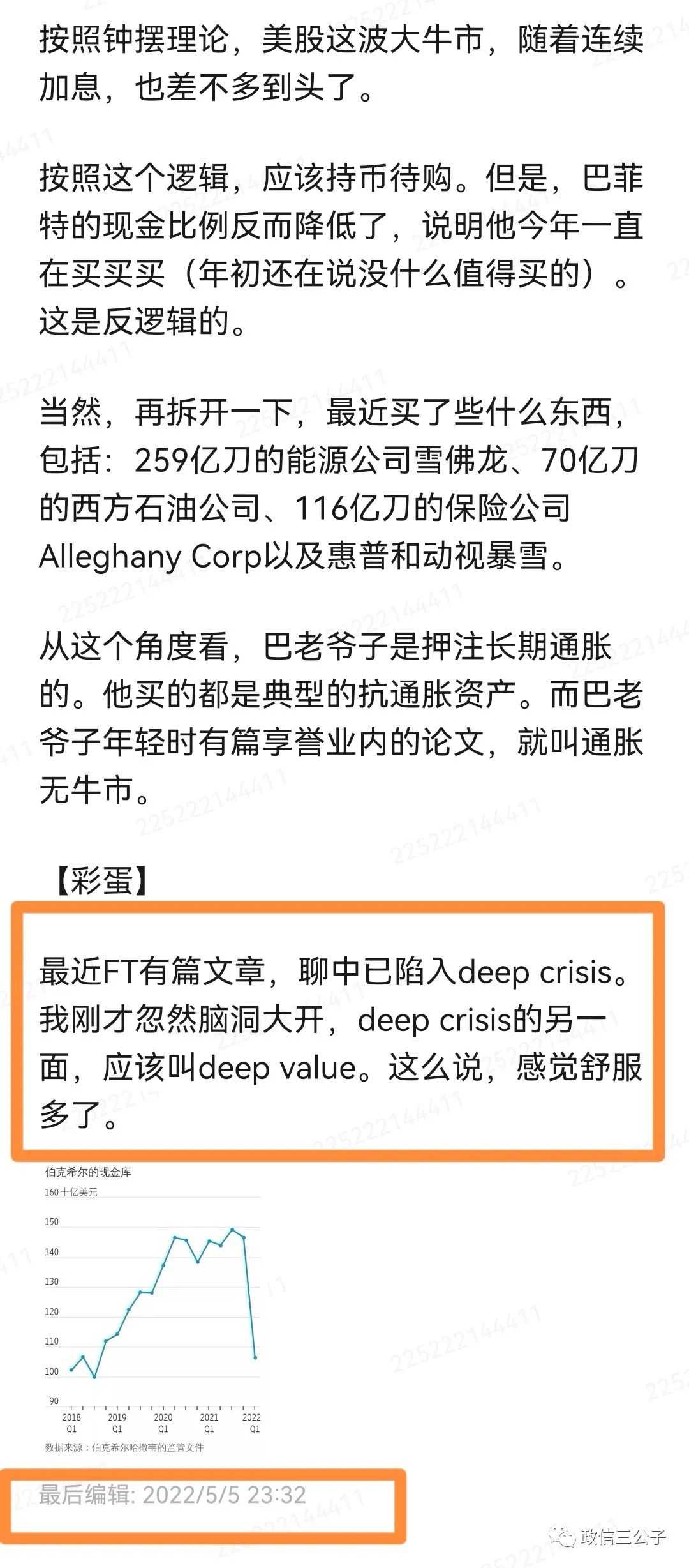 5月2號看完巴菲特和芒格的股東會,當晚寫了篇體會。剛才瞥了眼美股,已經跌到慘不忍睹,預見性還是一流的。