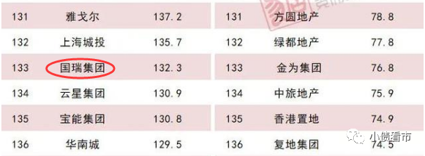 據(jù)克而瑞數(shù)據(jù),2021年國瑞集團以132.3億操盤金額在房企中位列第133位,屬于中小型房企。