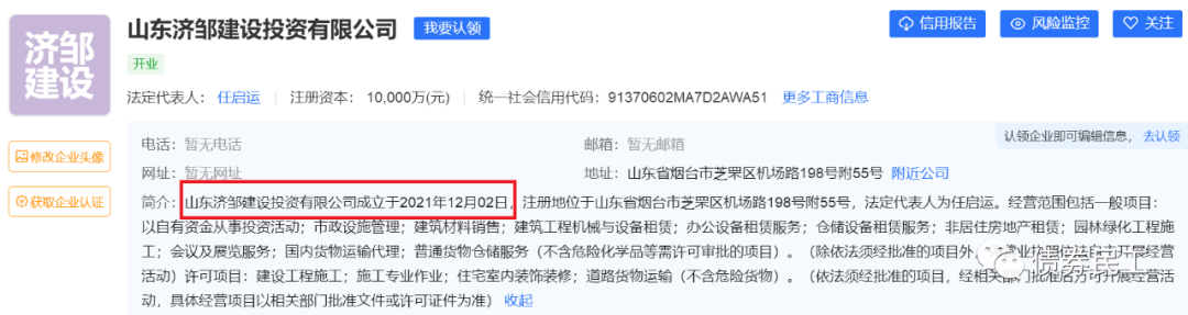 2、從公司的成立時間來看,這個公司是剛成立的,也就是說非法行為應該剛開始沒多久。而這樣看,鄒城建發的反應可謂是非常之快了,值得一個大大的贊。