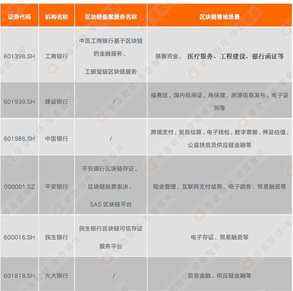 表:銀行業區塊鏈備案信息及落地場景