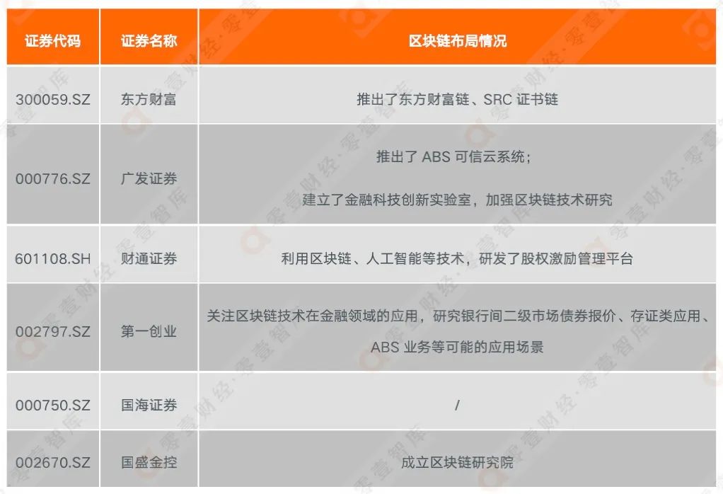 表:證券公司的區塊鏈實踐情況