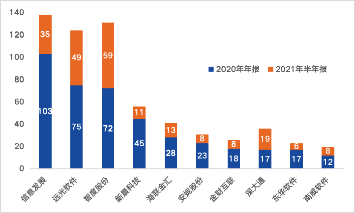 圖:2020年報、2021半年報中提及“區塊鏈”次數較多的上市公司