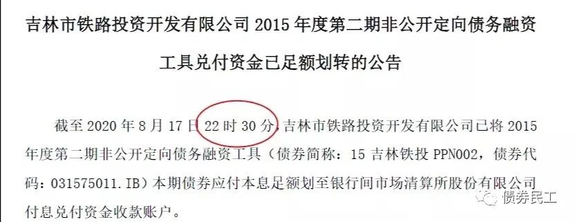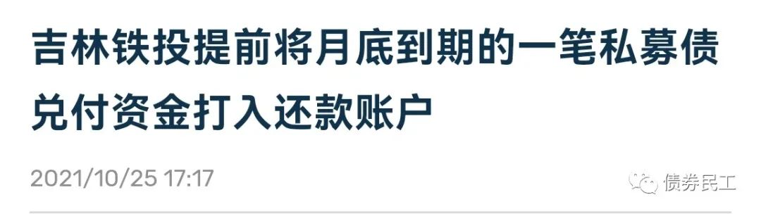 原標(biāo)題: 還是城投香!吉林鐵投提前將10月底私募債到期兌付資金劃入還款賬戶!