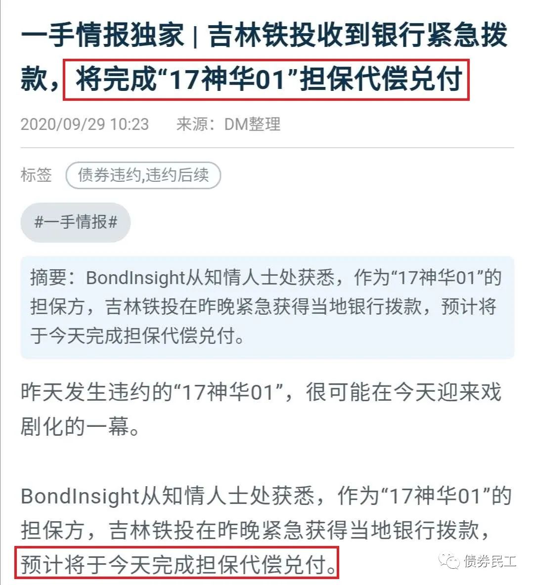 此后的2020年9月29日,吉林鐵投擔(dān)保的17神華01目也履行代償責(zé)任。