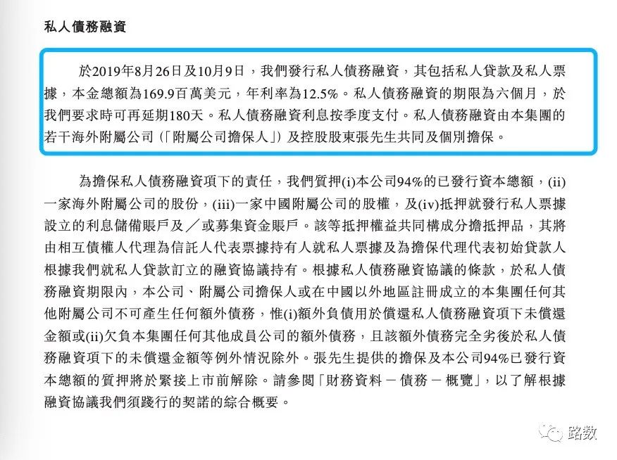 再排除招股書中列出的外債——發行于2019年9月和10月,本金總額達到1.699億美元,年化利率12.5%的私人貸款及私人票據。因為顯示的期限上限是12個月,不應該為中長期債務。▼