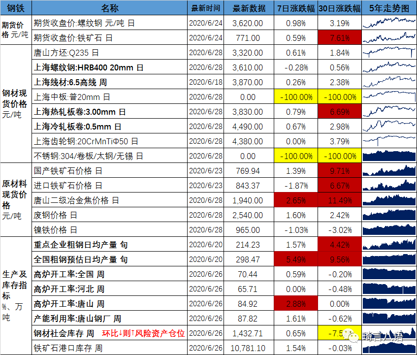鋼鐵行業(yè)數(shù)據(jù)表