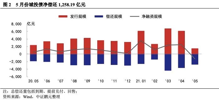 二、5月城投債發(fā)行規(guī)模大降導(dǎo)致凈融資轉(zhuǎn)