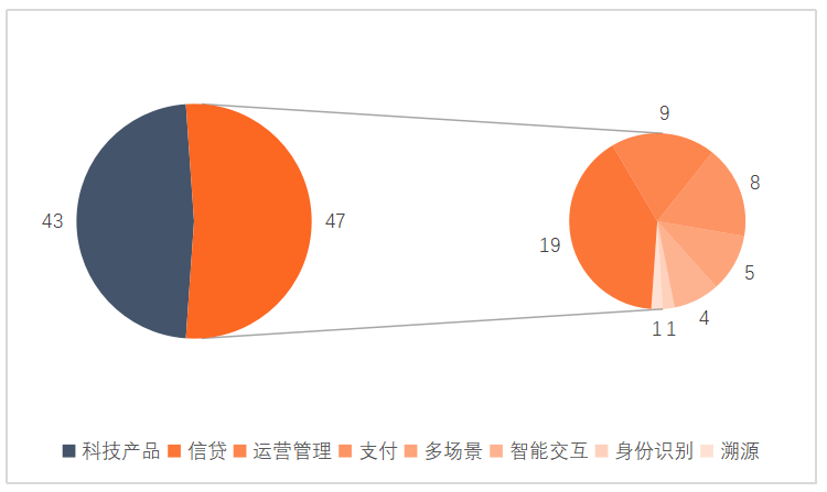 截至2021年6月,三批金融科技創(chuàng)新監(jiān)管試點(diǎn)應(yīng)用中,有47個(gè)屬于金融服務(wù),43個(gè)屬于科技產(chǎn)品。