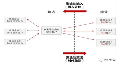 第二種:境內(nèi)外均有一個(gè)資金池,然后進(jìn)行跨境的資金劃撥。