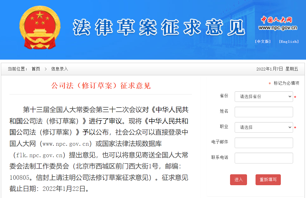 近日,全國人大常委會就《中華人民共和國公司法(修訂草案)》(以下簡稱“草案”)向社會公開征求意見。這是2005年進行了全面修訂后的《公司法》在歷經2013年和2018年少許修正之后的首次大修。