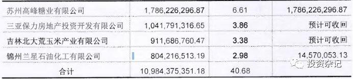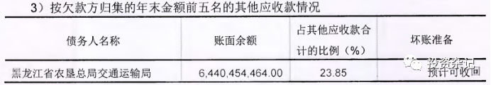 北大荒2019年底其他應收款227.02億,占總資產比重11.4%,規模和占比是比較大的,且三年以上其他應收款占比達到了39.23%,賬齡偏長,整體其他應收款質量是比較差的。這里面很大一部分是非經營性占款,被股東或者關聯方占用了,欠款最多的就是黑龍江農墾局交通運輸局,占用了64億,三亞保力房地產是黑龍江建投下面的地產公司,公司拆借了10億給他,第五名錦州蘭星石化是個民企,公司拆借了8億。僅僅這前五大,非經營占款就達到了90億左右,而且前五大占比近40%,后面還有60%也就是130多億沒有披露明細,這里面很可能還有很多非經營占款。這么大金額被挪用到體外的資金我們是很難在北大荒自己的資料里面跟蹤到其這部分被占用資金的實際風險的。