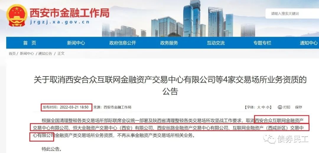 根據西安市金融工作就2022年3月21日披露的信息,4家金融資產交易中心公司被取消業務資質,其中包括恒大金融資產交易中心。