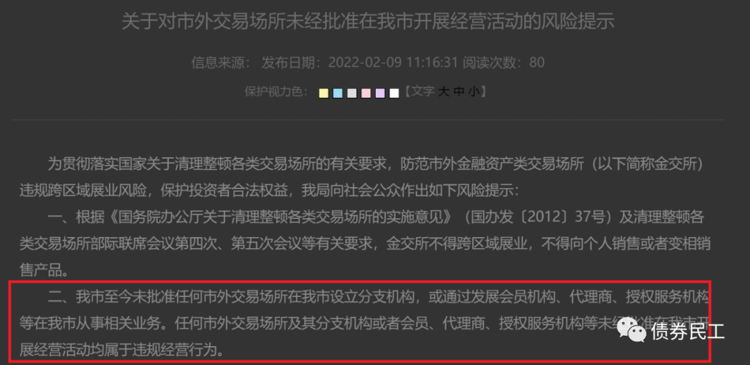 2、2022年2月9日,浙江省寧波市地方金融監督管理局公告,針對金融資產類交易場所,“至今未批準任何市外交易場所在我市設立分支機構,或通過發展會員機構、代理商、授權服務機構等在我市從事相關業務。”如果不能進行異地展業,對于金交所各類的產品來說,影響還是非常大的。