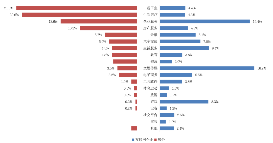 圖:房企與互聯(lián)網(wǎng)公司主要投資領(lǐng)域占比分布