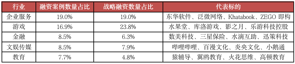 圖:騰訊2020年投資數(shù)量TOP5的行業(yè)具體信息