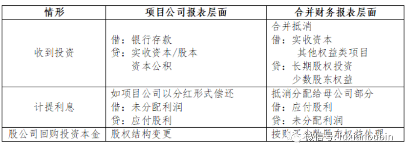 在實際業務中明股實債獲得的資金記入所有者權益,但其真實列報屬性根據還本付息義務的主體不同有所不同。根據現行會計準則,投資在不同的會計主體層面列報屬性可能有所不同(如下表所示)