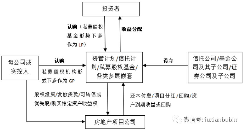 三是私募股權基金投資模式。私募股權基金投資模式下,一般由項目公司母公司或實際控制人作為GP,享受基金劣后收益,投資方作為LP,享受基金優先級收益,私募股權投資基金以權益投資方式投資房地產項目公司,仍以特殊分紅條款或回購等方式來進行退出。