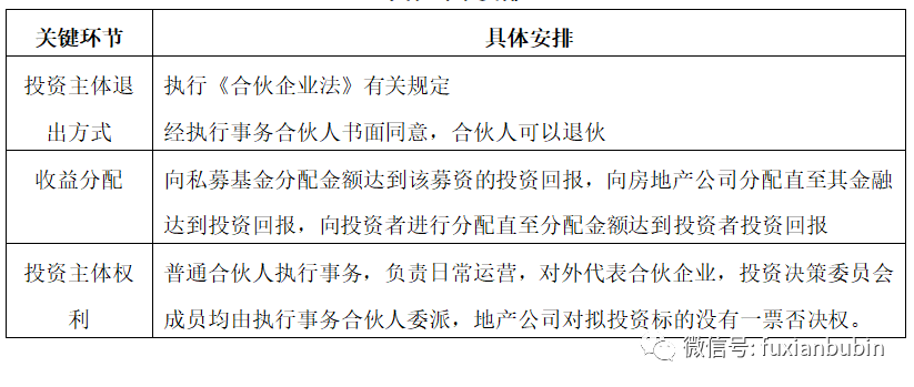 從投資主體退出方式看,主要依照《合伙企業法》的有關規定,但投資者作為普通合伙人,可以同意私募基金退伙;從收益分配看,收益分配有一定順序,私募基金作為優先級,投資者和房企為劣后級,在私募基金達到投資回報后,投資者可以同意私募基金退出,私募基金作、為優先級,直至達到投資回報,則該投資回報為固定收益;從投資主體權利來看,合伙事務主要由投資者執行,但從實際上看,地產公司仍為旗下商業地產的實際運營主體,實際風險報酬尚未轉移,仍由地產公司承擔實質風險。