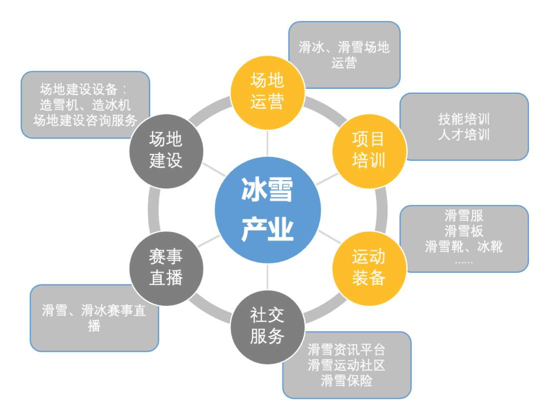 在冰雪產業中,其上下游產業既包含面向B端的場地建設設備、賽事直播,又包含面向C端的消費者旅游、培訓、個人裝備等產業。而能夠與購物中心模式相匹配的冰雪產業主要集中在室內場地運營、滑雪裝備售賣、滑雪技能培訓這三個領域。