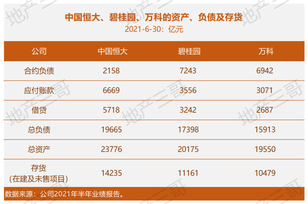 恒大和碧桂園、萬科最大的不同是負債結構,它的負債來自于借款和商票的比例遠高于后兩家,萬科和碧桂園來自預售款的負債明顯高于恒大。