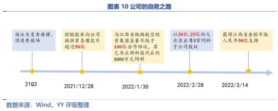 財務逐步惡化后,公司通過賣母豬、賣資產努力斷臂求生,后又積極尋求股東、外部政府的援助,可用之牌都打了一遍,目前已經獲得200億左右的外部支援,本輪周期預計可以熬過,僅存的0.6億信用債大概率可以償付。