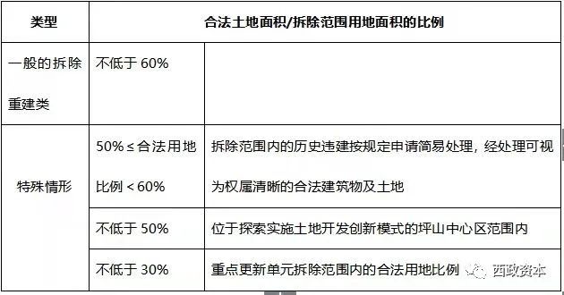 在規劃層面判斷項目的可行性之后,項目本體的情況成為了第二個重點關注對象,比如擬申報更新的用地范圍內,如果五類地對應的合法用地面積無法達到60%,而且也無法通過非農、征返指標調入或飛地等方式解決,那項目連更新立項的條件都無法達到。