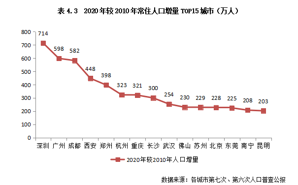 2、人口競爭:人口滯漲背景下,仍有15城近十年常住人口增量超200萬(略)