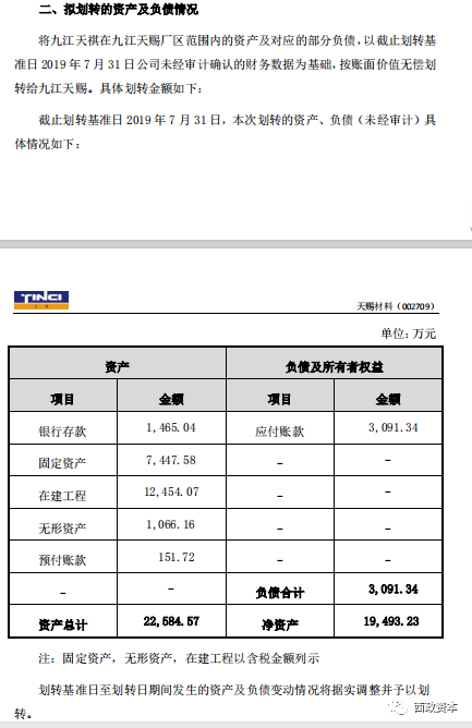 本案以上市公司《廣州天賜高新材料股份有限公司關于全資子公司與全資孫公司內部資產及負債劃轉的公告》作為參考案例進行分析。