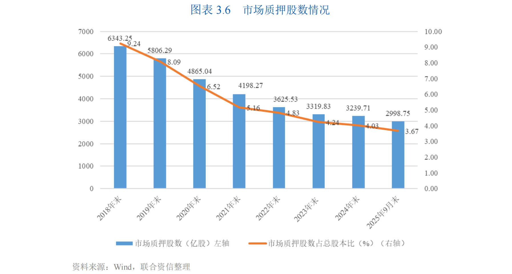 截至2025年9月末,市場質押股份市值合計3.04萬億元,較上年增長8.55%,市場質押股數占總股本比例為3.67%,較上年末下降0.36個百分點,占比處于較低水平,整體風險可控。