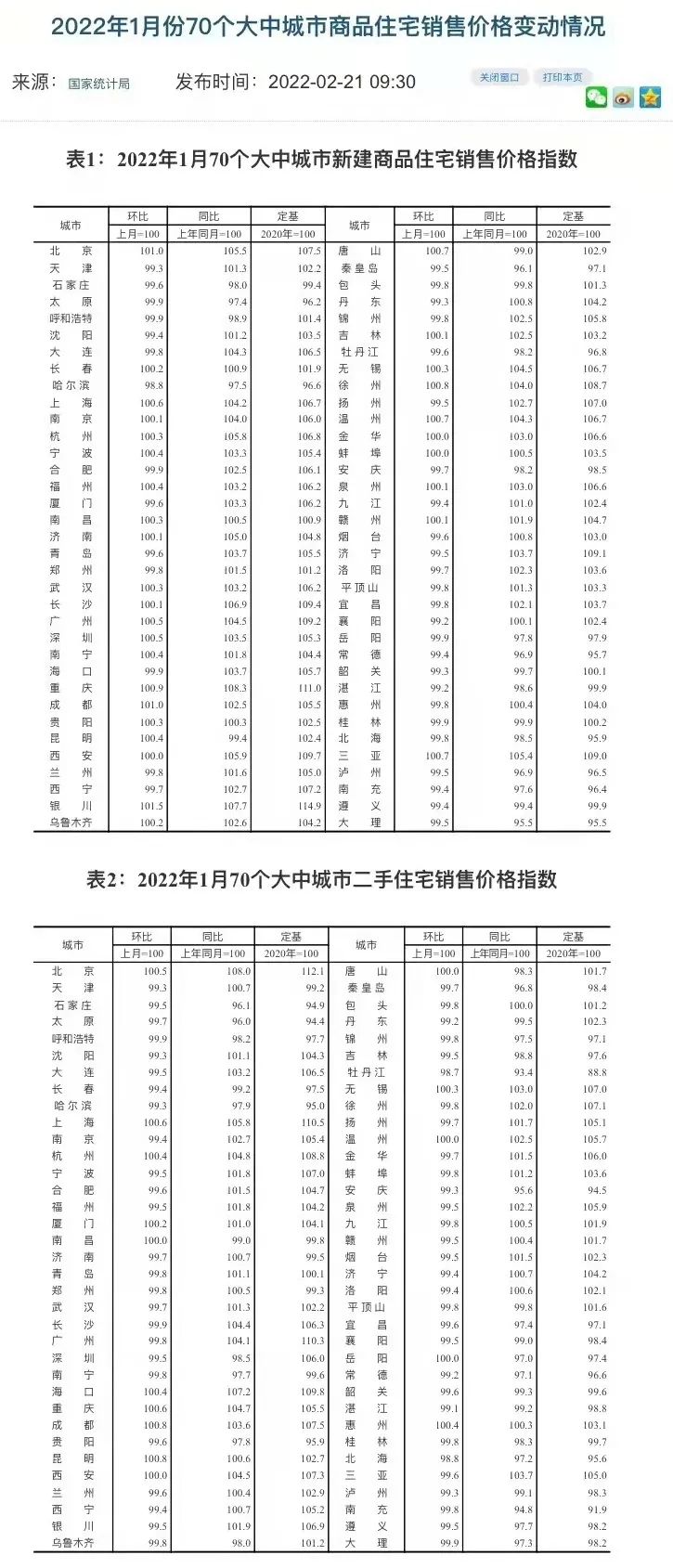 1、樓市最壞的時候過去了,1月數(shù)據(jù)其實反倒很有意義。國統(tǒng)局數(shù)據(jù)很說明問題,2022年2月21日,國統(tǒng)局70城商品住宅銷售價格變動情況數(shù)據(jù)披露,2022年1月份商品住宅銷售價格環(huán)比降勢減弱,同比漲幅總體回落。