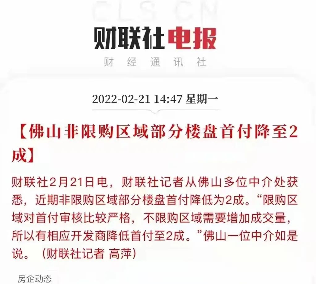最新的降低首付新聞是佛山,佛山的非限購區(qū)域。