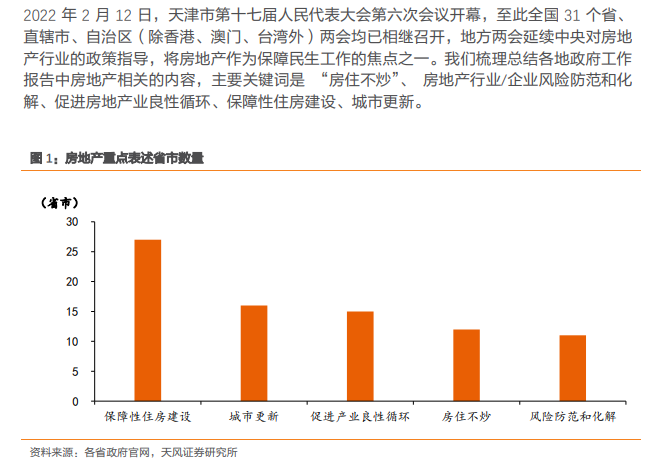 具體到各地,也是這樣執(zhí)行,天風證券總結(jié)了各地新年的會,除了天津延期,地方延續(xù)中央對房地產(chǎn)行業(yè)的政策指導(dǎo),將房地產(chǎn)作為保障民生工作的焦點之一。
