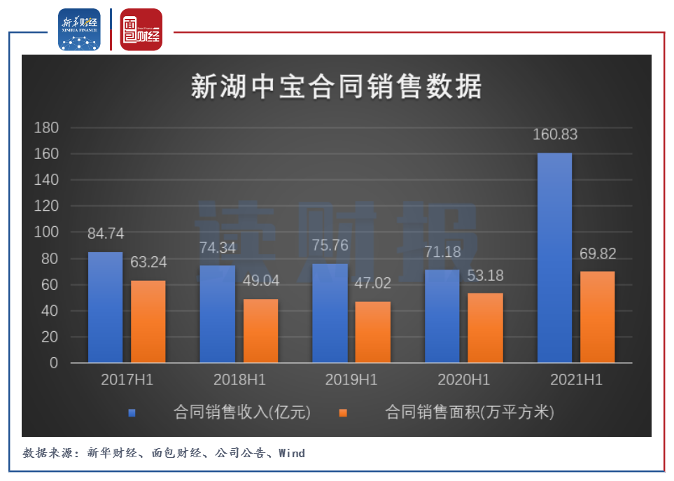 圖1:2017H1至2021H1新湖中寶合同銷售數(shù)據(jù)