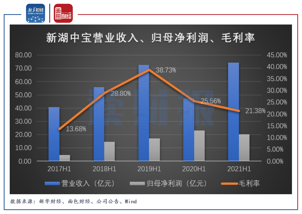 近期,新湖中寶披露2021年半年報,公司實現(xiàn)營業(yè)收入74.42億元,同比上升57.19%;歸母凈利潤20.26億元,同比減少12.91%。