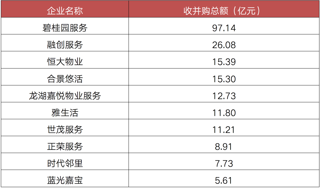 表:2020年至今物管企業(yè)收并購(gòu)總額TOP10