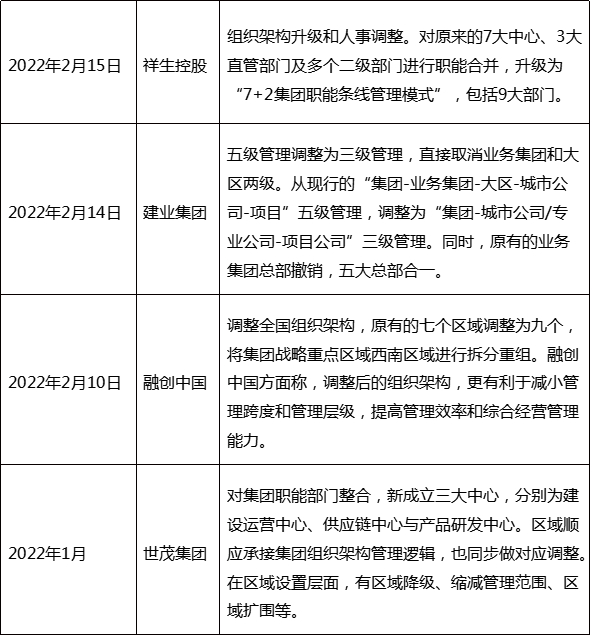 近期,從房企動(dòng)作來(lái)看,為了在行業(yè)動(dòng)蕩之際“向管理要紅利”,房企紛紛調(diào)整組織架構(gòu)。