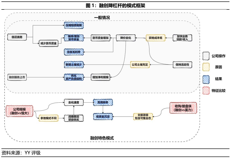 作為TOP10自紅檔成功降杠桿為黃檔的房企,融創的去負債手段不外乎剝離物業公司上市、去杠桿降負債和提高周轉去化等老生常談。但若過度聚焦于前述幾個方案,則無法穿透至降杠桿的本質,即融創具備如此大規模與高杠桿的天然制約情況下,如何做到快速去負債。因此本文提供另一思路,從融創兩大特征“大規模拿地”如恒大和“業界接盤俠”如富力作為切入點進行比較,探討融創能而恒大富力不能的原因。