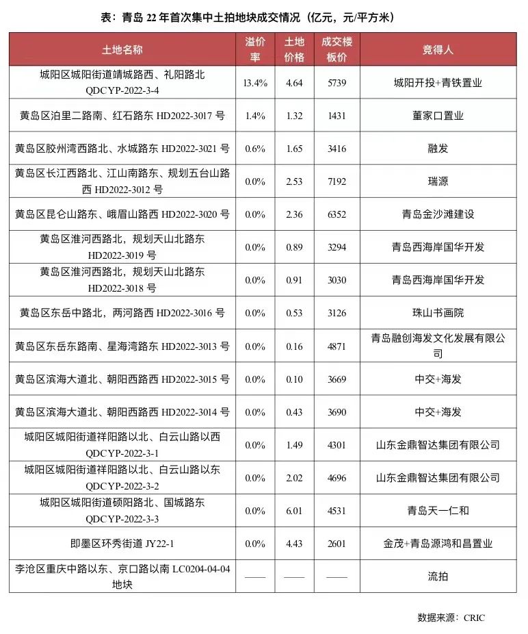 青島此次土拍表現仍舊延續了去年三批次的平穩。