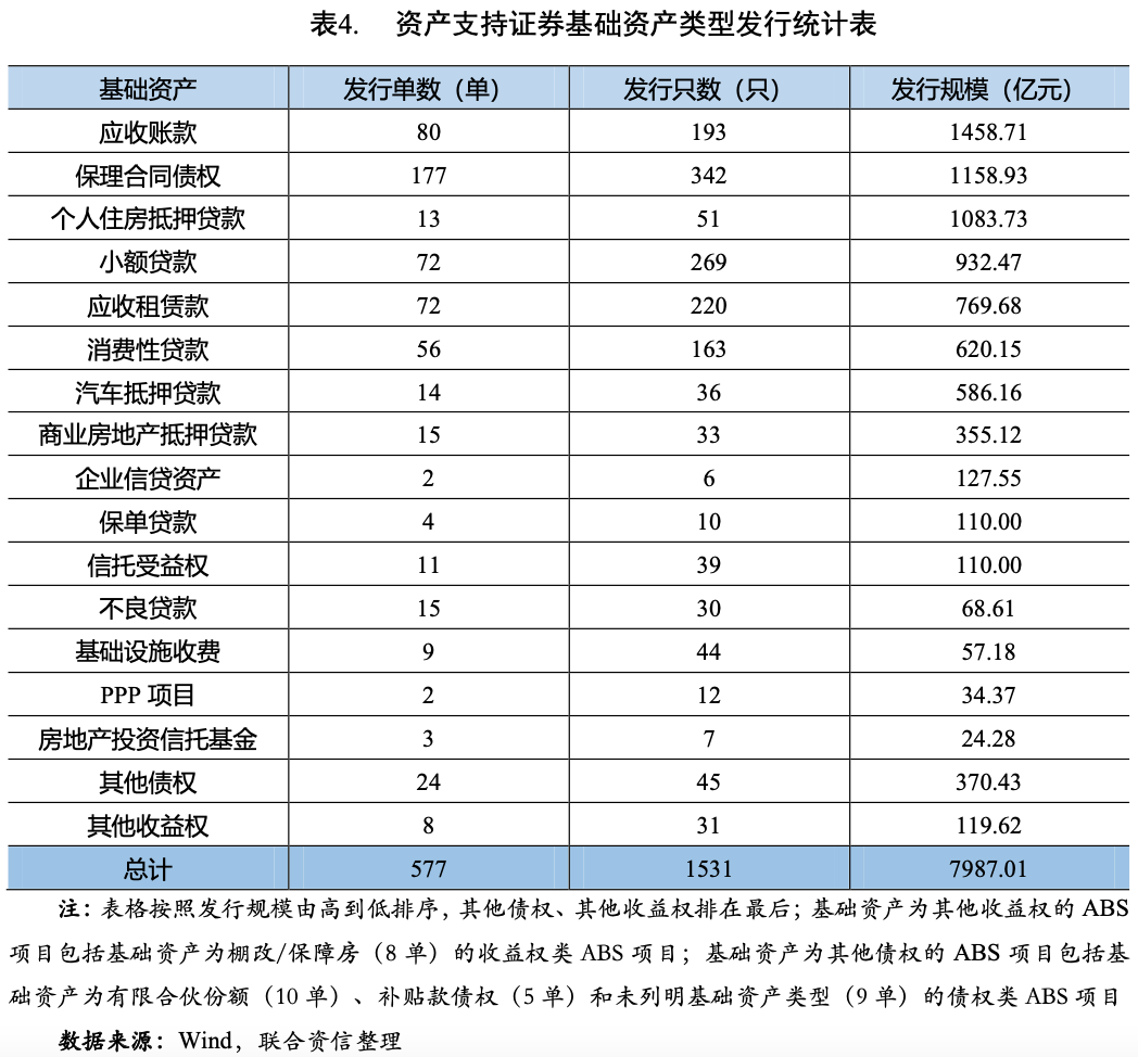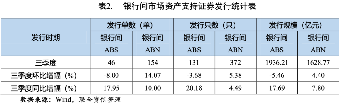 [1]統計期以債券發行日為準,統計范圍包括銀行間市場、上交所和深交所市場公募和私募發行的資產支持證券,不包括全國中小企業股份轉讓系統、機構間私募產品報價與服務系統、上海保險交易所、證券公司柜臺市場發行的資產支持證券。