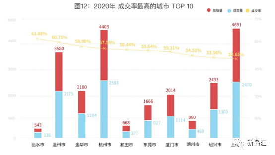 房抵貸放款和不良資產(chǎn)投資最熱的地區(qū)一直是北京、上海、廣州、杭州、深圳等一線城市,而上海又是這些城市中最熱的,當(dāng)上海法拍限購以后,可能會(huì)導(dǎo)致部分投資機(jī)構(gòu)由上海轉(zhuǎn)向其他地區(qū)進(jìn)行投資,比如成都、青島、重慶等新一線城市。根據(jù)為睿學(xué)院數(shù)據(jù)統(tǒng)計(jì),全國成交率城市排名中,最高的是重慶,2020年成交7624套房。通過成交量和成交率城市排名也能看出一些新的機(jī)會(huì)。