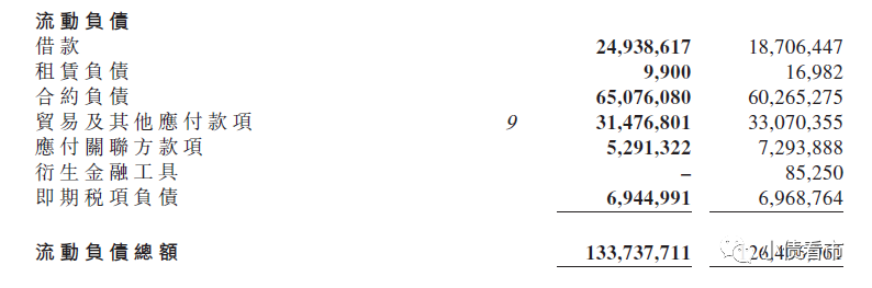 流動負(fù)債情況