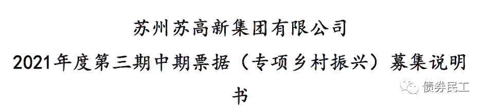 繼權(quán)益出資型票據(jù)和碳中和債之后,交易商協(xié)會(huì)再度推出新產(chǎn)品:鄉(xiāng)村振興票據(jù)!根據(jù)孔雀開屏網(wǎng)站的公開信息,蘇州蘇高新集團(tuán)有限公司2021 年度第三期中期票據(jù)(專項(xiàng)鄉(xiāng)村振興)已經(jīng)處于等待上會(huì)階段了,標(biāo)志著專項(xiàng)鄉(xiāng)村振興票據(jù)要到來(lái)了。