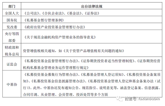 上述規定參見《證券投資基金法》;《私募投資基金監督管理暫行辦法》(證監會令第105號);《中華人民共和國公司法》;《中華人民共和國合伙企業法》