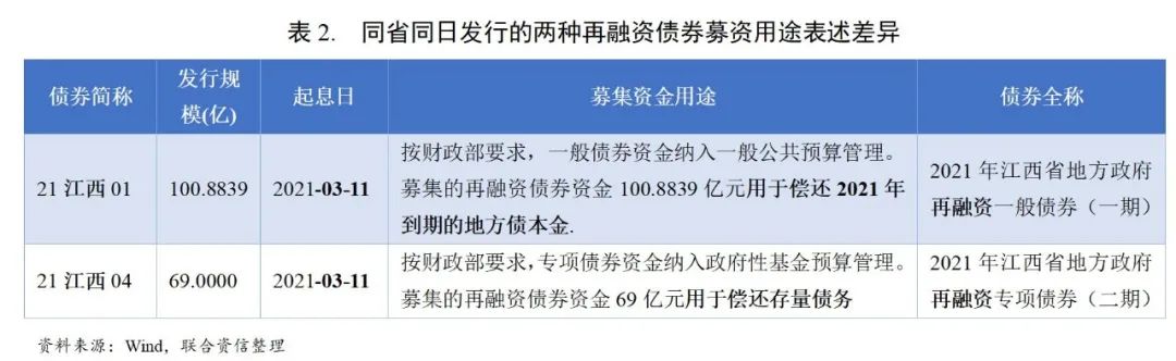 之所以采用再融資債券助力償還地方政府隱性債務,或主要由于融資債券用途具備靈活調整的可能性。在當前的地方政府債券制度框架下,新增債券及置換債券用于化解現期債務均面臨一定操作上的約束。新增債券方面,新增債券是“新增”的地方政府債務,且由于新增一般債券受到預算赤字的約束,每年新增規模很小,如2021年我國預算安排新增地方政府債務限額4.47萬億元,其中一般債務限額僅0.82萬億元,專項債務限額3.65萬億元,新增專項債券規模雖然較多但其募集資金需受限用于新開工項目。置換債券是用于償還清理甄別認定的截至2014年末全部非政府債券形式存量政府債務。因此,新增債券及置換債券均面臨一定操作上的約束。而再融資債券主要強調債務滾續的作用,募集資金用途具備一定靈活調整的可能性。