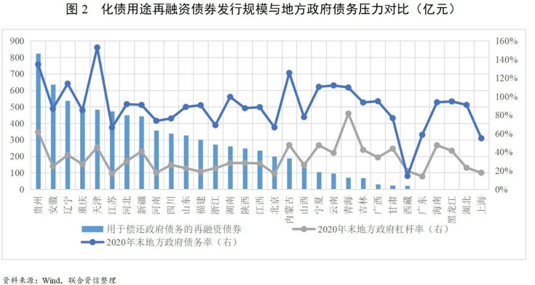 一是地方財政及金融風險管理壓力較大。一方面,近年來我國實施大規模減稅降費,帶來一些地方財政減收,而2020年受疫情影響,財政減收增支壓力進一步增加。2020年全國各省一般公共預算收入增速中位數為0.1%,增速下滑的省份有14個,地方財政受到的負面影響相對較大。另一方面,疫情導致中小銀行信用風險有所暴露,銀行信貸資產質量有所下滑,地方平臺公司作為銀行主要債務人,債務風險極易傳導至銀行業,進而引發區域性金融風險,再融資債券助力化債在全國范圍的展開,一定程度上緩解了中小銀行資產端信用風險管理壓力,防范發生區域性金融風險。此外,2020年陸續出現的國有企業及城投非標違約等信用風險事件導致流動性風險加大,部分區域融資環境受到不利影響。