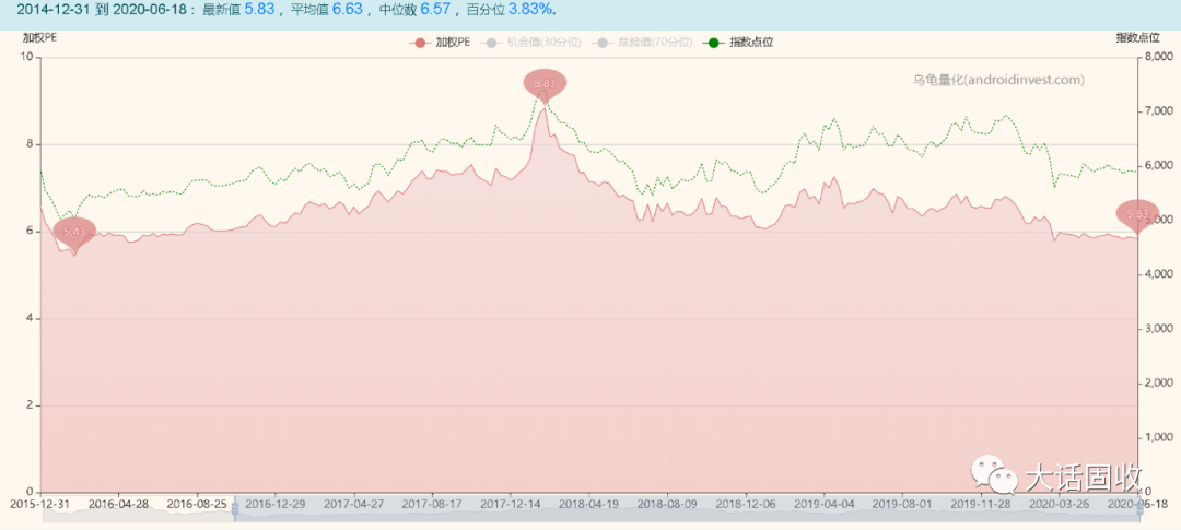 可是你看看全圖,多少年了,PE一直在6~8之間徘徊。特別是18年初沖高之后,后面幾乎沒怎么漲……看看對應的股價就明白了(上圖虛線)。