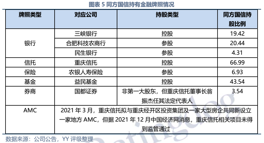 同方國信曾被人稱為重慶金融的“半壁江山”,其以重慶信托為支點,控股和參股多家金融機構(gòu),以三峽銀行為核心,一手把握信托、銀行、保險(參股)、基金、券商(參股)等牌照。