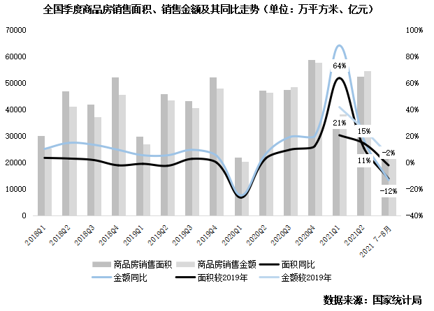 7-8月銷售規(guī)模較2020年、2019年同期跌12%、2%,東部地區(qū)增速回落13pct