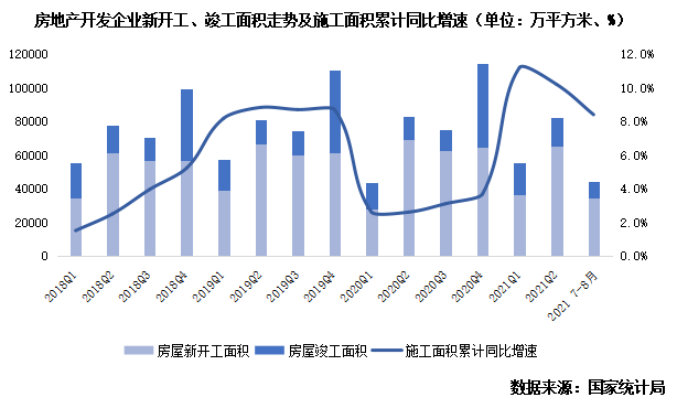新開工與竣工增速“一降一升”現(xiàn)狀延續(xù),四季度施工面積高位延續(xù)但增速將回落